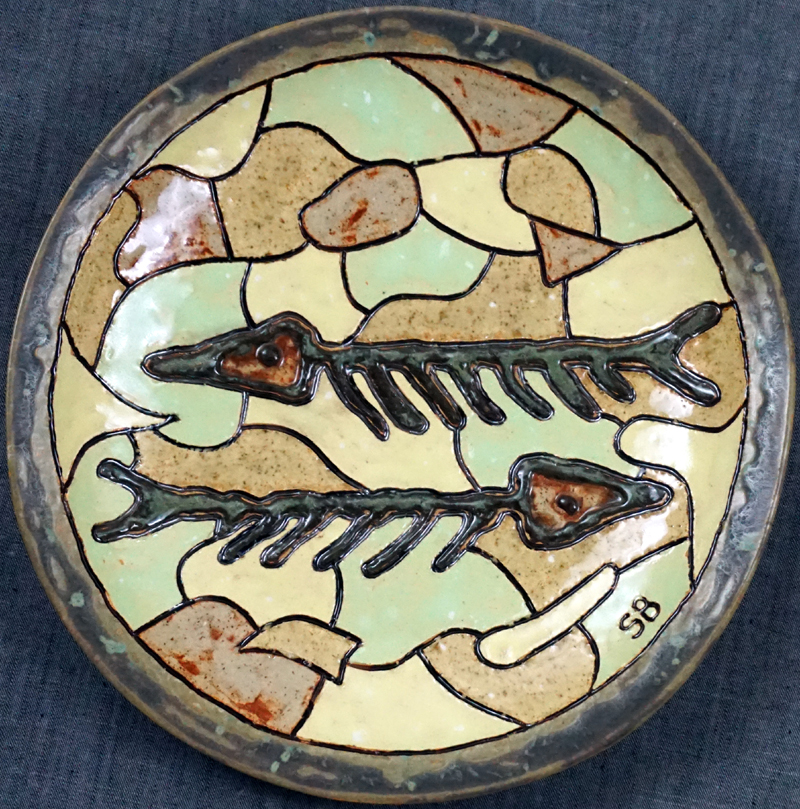 # 1019. Plate. Herrings. Thrown stoneware, d. 10.5 in, 2022