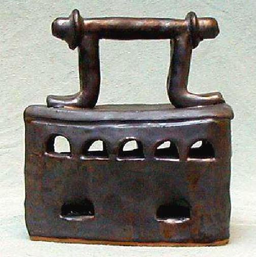 # 0147. Iron. Handbuilt stoneware, h. 7 in, 1998