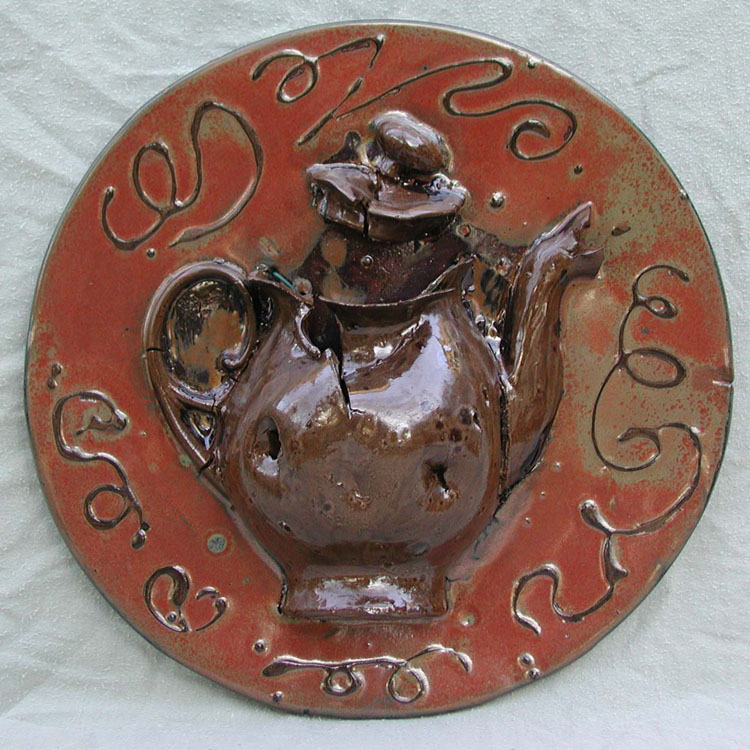 # 0309. Platter. Teapot. Handbuilt stoneware, d. 15 in, 2001