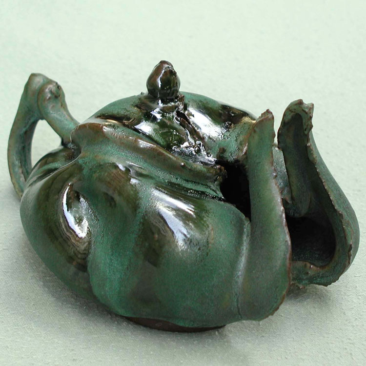 # 0337. Teapot. Stoneware slip-cast, altered, h. 4.5 in, 2002