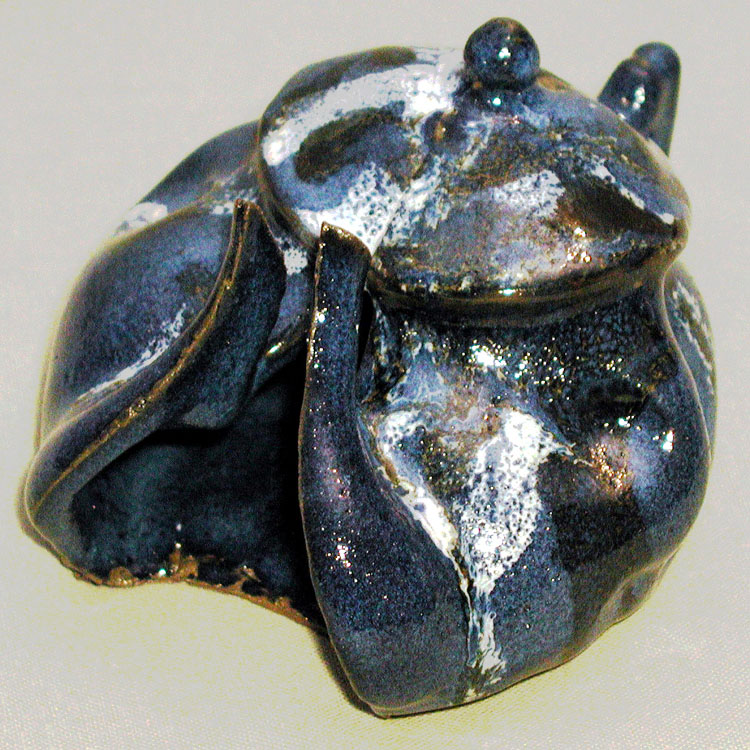 # 0362. Teapot. Stoneware slip-cast, altered, h. 4 in, 2002