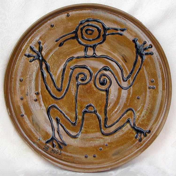 # 0380. Plate. Eve. Thrown and altered stoneware., d. 10 in, 2003