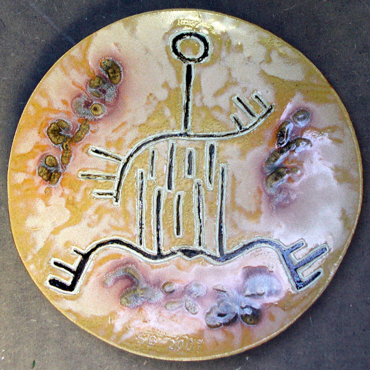 # 0433. Plate. Eve. Thrown and carved stoneware, d. 10 in, 2007