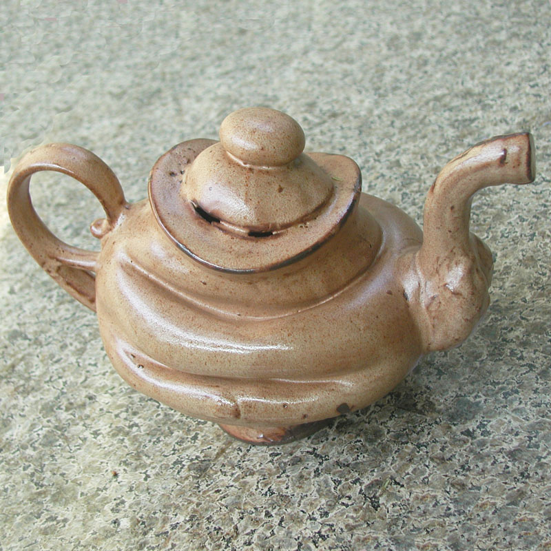 # 0493. Teapot. Stoneware slip-cast, altered, h. 5 in, 2008