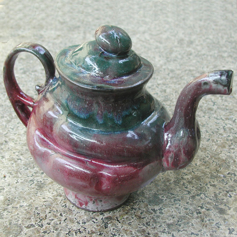 # 0494. Teapot. Stoneware slip-cast, altered, h. 6 in, 2008