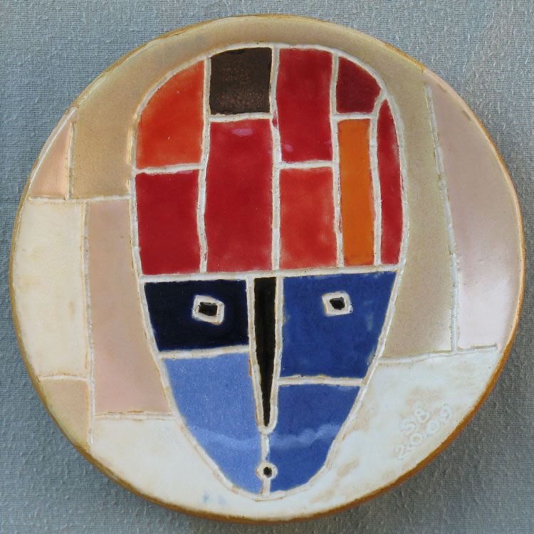 # 0516. Saucer. Mask. Thrown and carved stoneware, d. 7.5 in, 2009