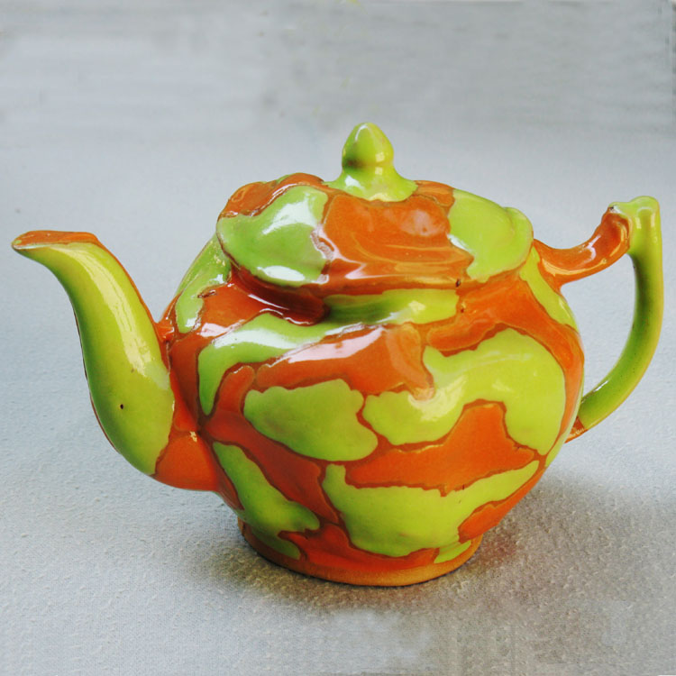# 0520. Teapot. Stoneware slip-cast, altered, h. 4 in, 2009