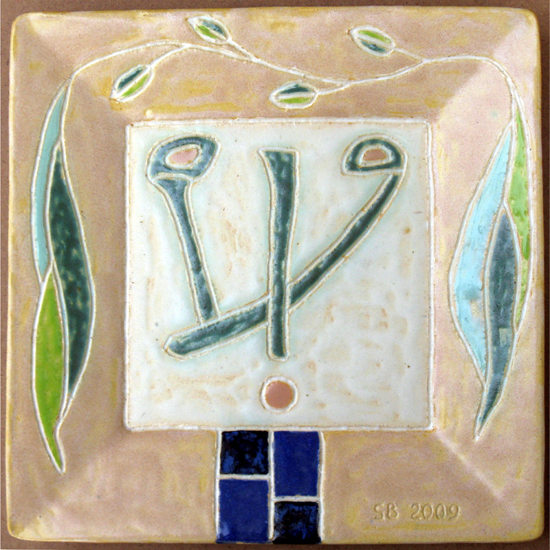 # 0532. Plate. Mask. Thrown and carved stoneware, 9.5 x 9.5 in, 2009