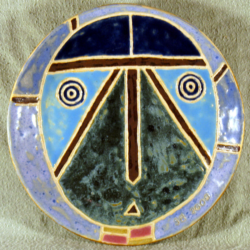 # 0542. Saucer. Mask. Thrown and carved stoneware, d. 7.5 in, 2009