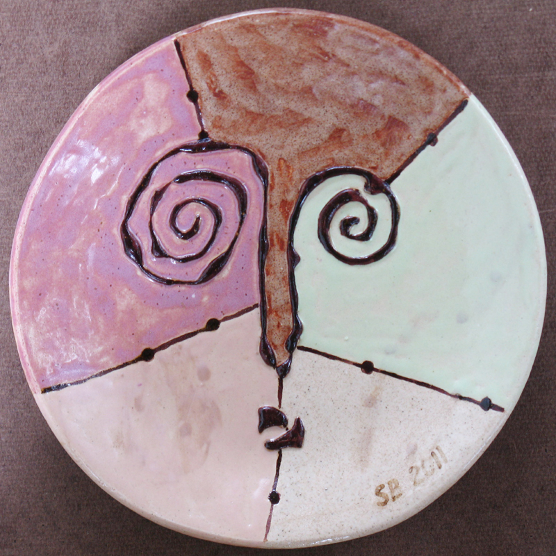 # 0626. Saucer. Mask. Thrown and altered stoneware, d. 7.5 in, 2011