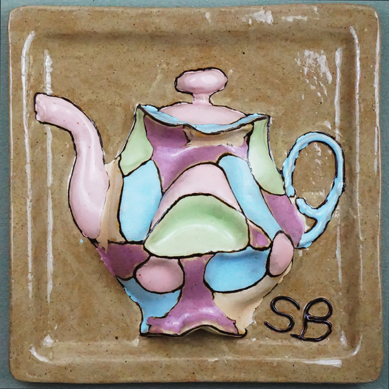 # 0714. Platter. Teapot. Thrown and slip-cast stoneware, 13 x 13 in, 2015