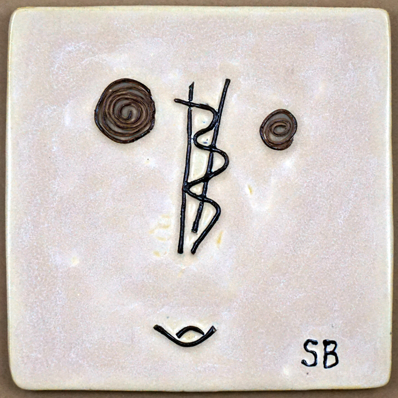 # 0739. Plate. Mask. Thrown and altered stoneware, 9 x 9 in, 2015