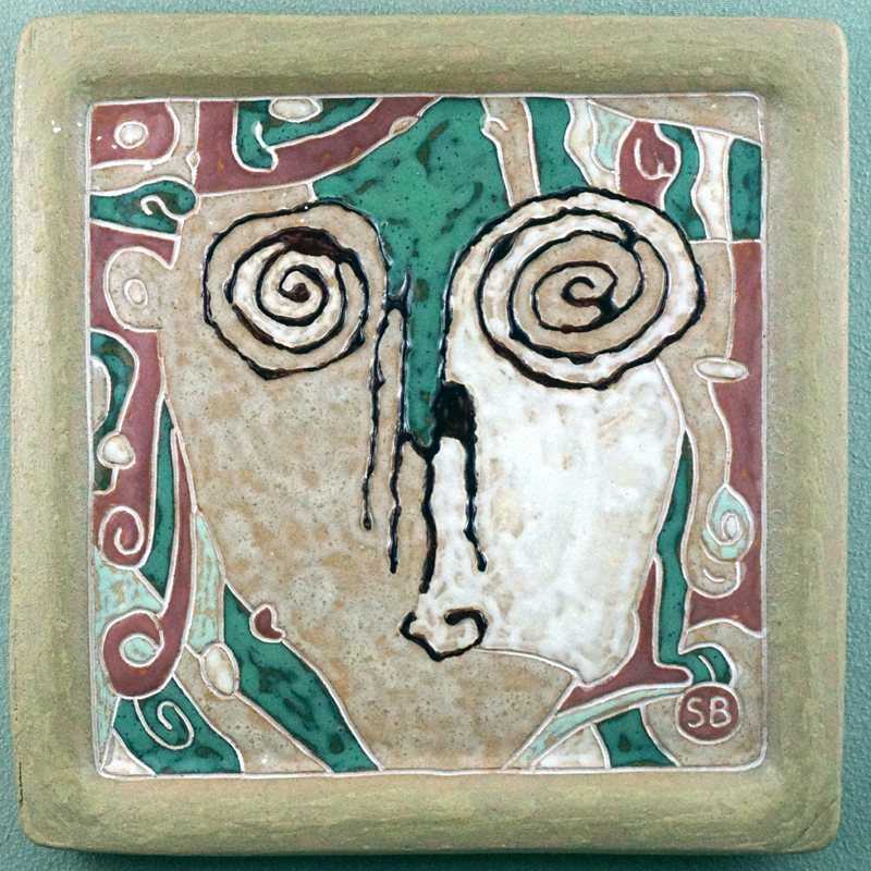 # 0933. Platter. Mask. Thrown and altered stoneware, 13 x 13 in, 2019