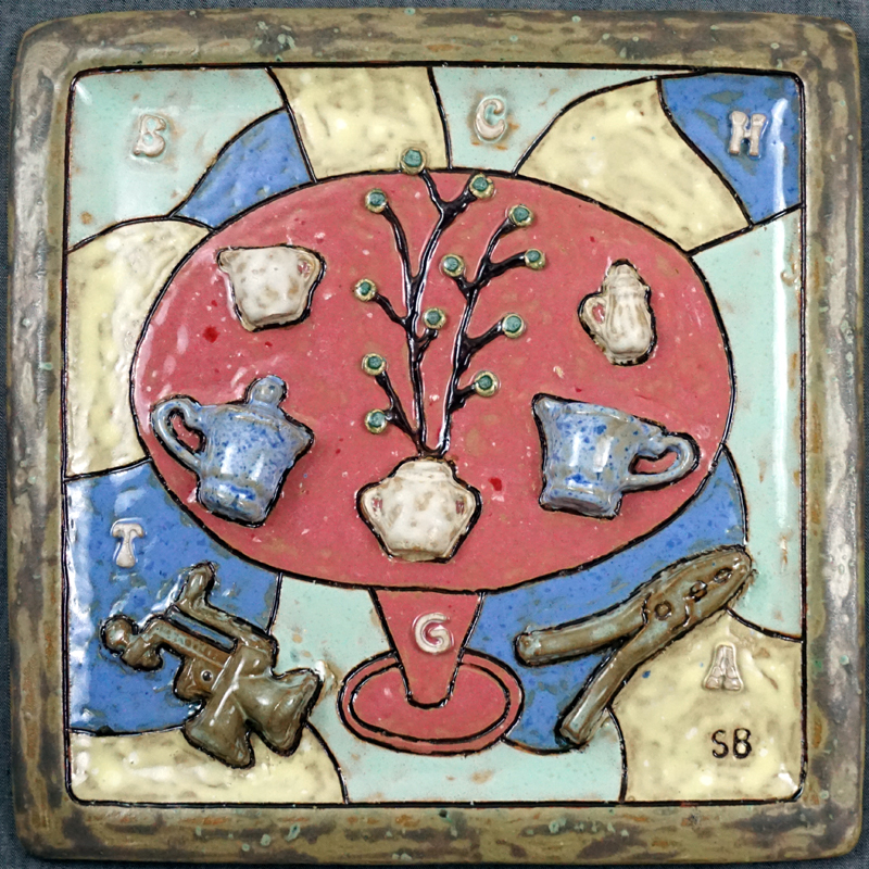 # 1040. Platter. Still Life. Thrown and slip-casted stoneware, 13 x 13 in, 2022