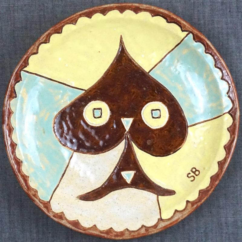 # 1115. Plate. Queen of Spades. Thrown stownware, d. 10.5 in, 2024
