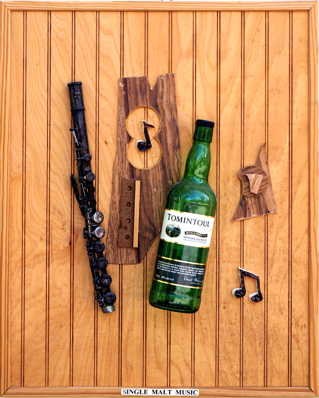 Single Malt Music (2015). Mixed media, 24 x 19 in.